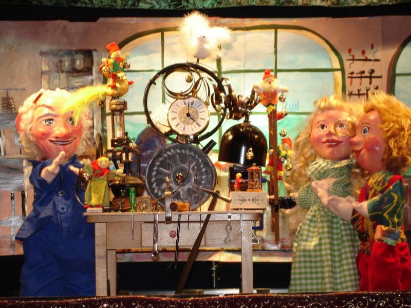 Les enfants entrent dans la boutique de Monsieur Léon, prudemment et sur la pointe des pieds. Dans la pénombre ils aperçoivent bientôt une étrange machine et tout au fond de l'atelier le vieux Monsieur Léon qui travaille. Il s'approche de la machine, donne encore deux petits coups de marteau et ordonne aux lutins de se mettre au travail. La machine se met à tourner et Monsieur Léon est ravi : tout fonctionne. Il voit alors les enfants, les invite à venir vers lui pour découvrir le monde magique et merveilleux des boîtes à musique. Il fabrique en effet des boîtes à musique pour transporter les enfants au pays des rêves et faire danser les couleurs du printemps. "Comme c'est beau" s'exclament les deux enfants, émerveillés. C'est alors que l'on entend le bruit affreux d'une trompette dans la rue. Les enfants trouvent cela drôle et se précipitent dehors pour voir ce que c'est, laissant Monsieur Léon seul avec sa machine. Alors que la porte se referme, il leur crie qu'ils peuvent venir le voir quand ils voudront.