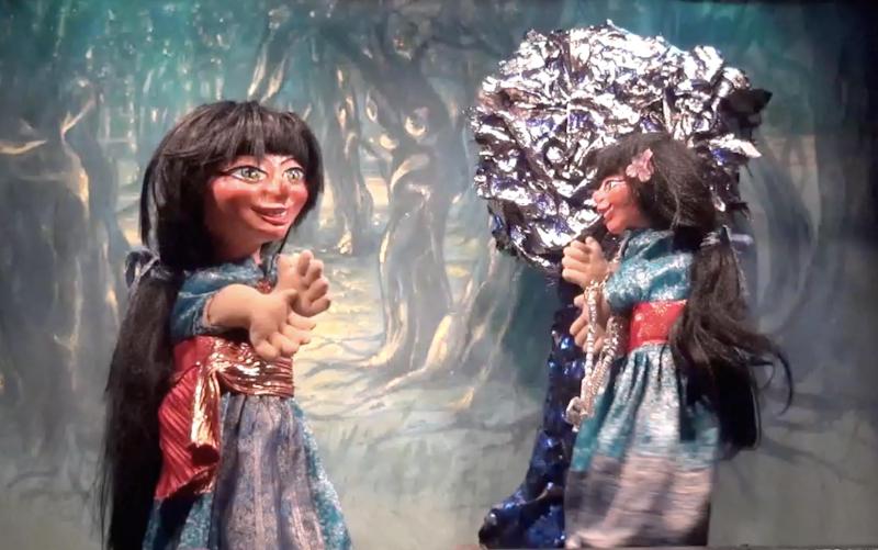 Perle d'Or et Fleurétoile s'avancent dans l'inquiétante forêt bleue. Cela fait des heures qu'elles marchent et toujours pas de château en vue. Fleurétoile aimerait retourner au village mais Perle d'Or aperçoit quelque chose briller et pense que le but est proche. Elles arrivent près d'un arbre au feuillage d’argent étincelant. Brusquement Perle d'Or a terriblement faim, elle demande à Fleurétoile de faire apparaître une table avec des mets. Mais Fleurétoile ne connaît pas la formule, elle propose d'aller cueillir des petits fruits dans la forêt.