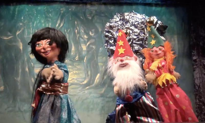 Perle d'Or reste seule, elle commence à avoir peur. Des bruits de clochettes se font entendre, une voix de fillette dit à son grand-père que le dragon semble s'être réveillé. Le grand-père propose d'aller voir sous l'arbre du dragon s'il n'y a pas quelqu'un. Les deux lutins, car ce sont des lutins de la forêt, entrent en scène et découvrent Perle d'Or cachée derrière l'arbre. Ils lui enjoignent de fuir car tous ceux qui s'arrêtent sous cet arbre réveillent le dragon et cela le rend furieux. Grand-père lutin lui conseille d'aller se réfugier près de l'étang, chez la Dame aux perles. Perle d'Or décide de ne pas attendre Fleurétoile et de suivre la recommandation du lutin.