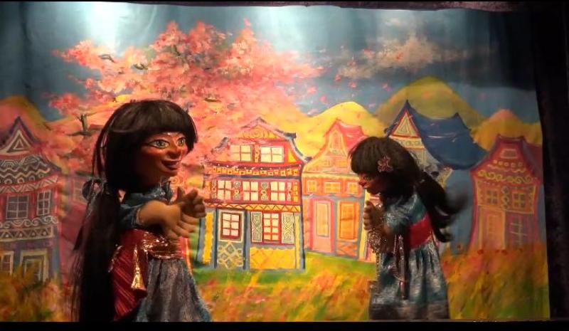 La scène Perle d'Or et Fleurétoile sur la place du village
