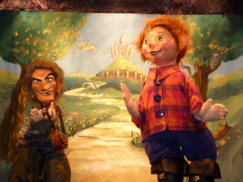 Un brigand entend l'intention de Théo d'aller au château et s'approche de lui. Il lui propose de faire le chemin ensemble, chasse les canards qui se moquaient de Théo et l'aide à sortir de la vase. Je m'appelle Œil-de-Verre et je suis ton ami, lui dit-il. Top là, lui répond Théo. Œil-de-Verre lui demande alors un petit service : il connaît un pommier couvert de pommes d'or, personne ne les cueille sauf un oiseau. Elles sont si haut placées, lui qui est un géant, pourrait-il les lui cueillir ? Théo accepte avec plaisir et suit Œil-de-Verre, qui se réjouit de jouer un bon tour à l'oiseau d'or.