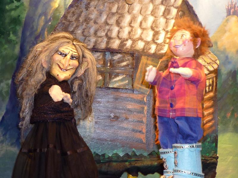 Il frappe à la porte de la cabane et de l'intérieur une voix lui demande qui il est. Une vieille femme aux longs cheveux gris sort et s'approche de Théo pour mieux le voir. Elle s'extasie sur les bottines qu'il porte, qui plairaient tant à son chouquinet !, et lui demande ce qu'il veut. Très poliment il présente sa question : a-t-elle vu passer des enfants avec un beau cheval ? Elle apprécie beaucoup ses bonnes manières et lui répond que les enfants ne viennent jamais ici car c'est la maison du Croc'Peton. D'ailleurs si ce dernier voit ses jolies bottines, il va tout de suite le croquer. Théo veut s'enfuir mais la vieille femme lui fait remarquer que Croc'Peton va justement rentrer et qu'il risque de le croiser. Elle propose à Théo, terrorisé, de le cacher en échange de ses petites bottines. Il accepte et ensemble ils entrent dans la maison.